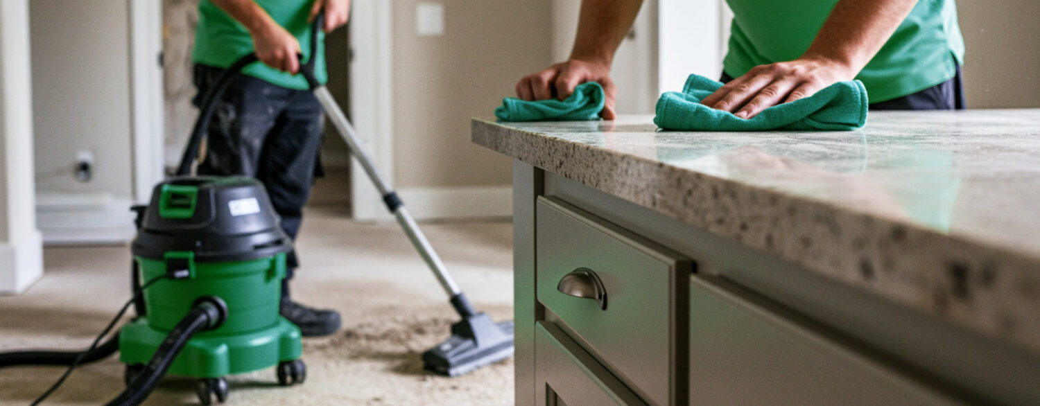 - Wiping down fixtures, cabinets, appliances, and baseboards